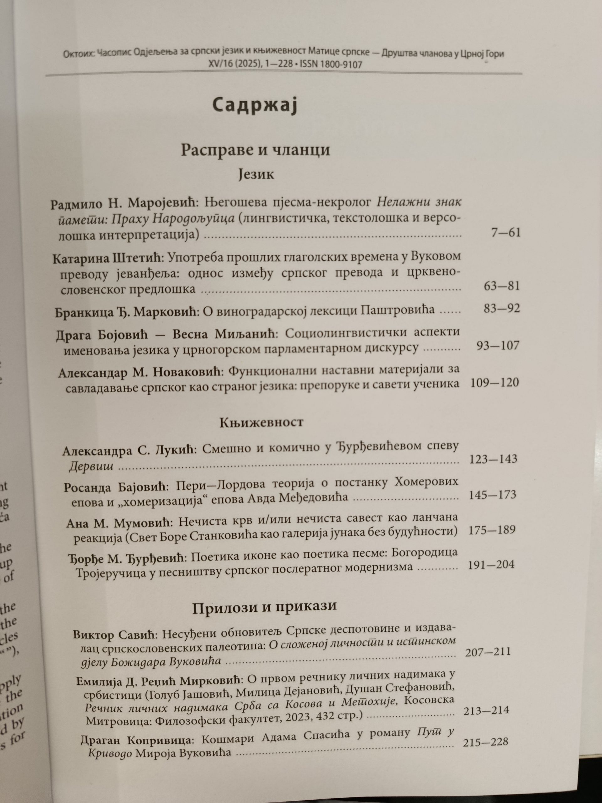 Из штампе је изашао нови број Октоиха – часописа Одјељења за српски језик и књижевност Матице српске – Друштва чланова у Црној Гори. Штампање часописа Октоих помогло је Министарство културе Републике Србије.