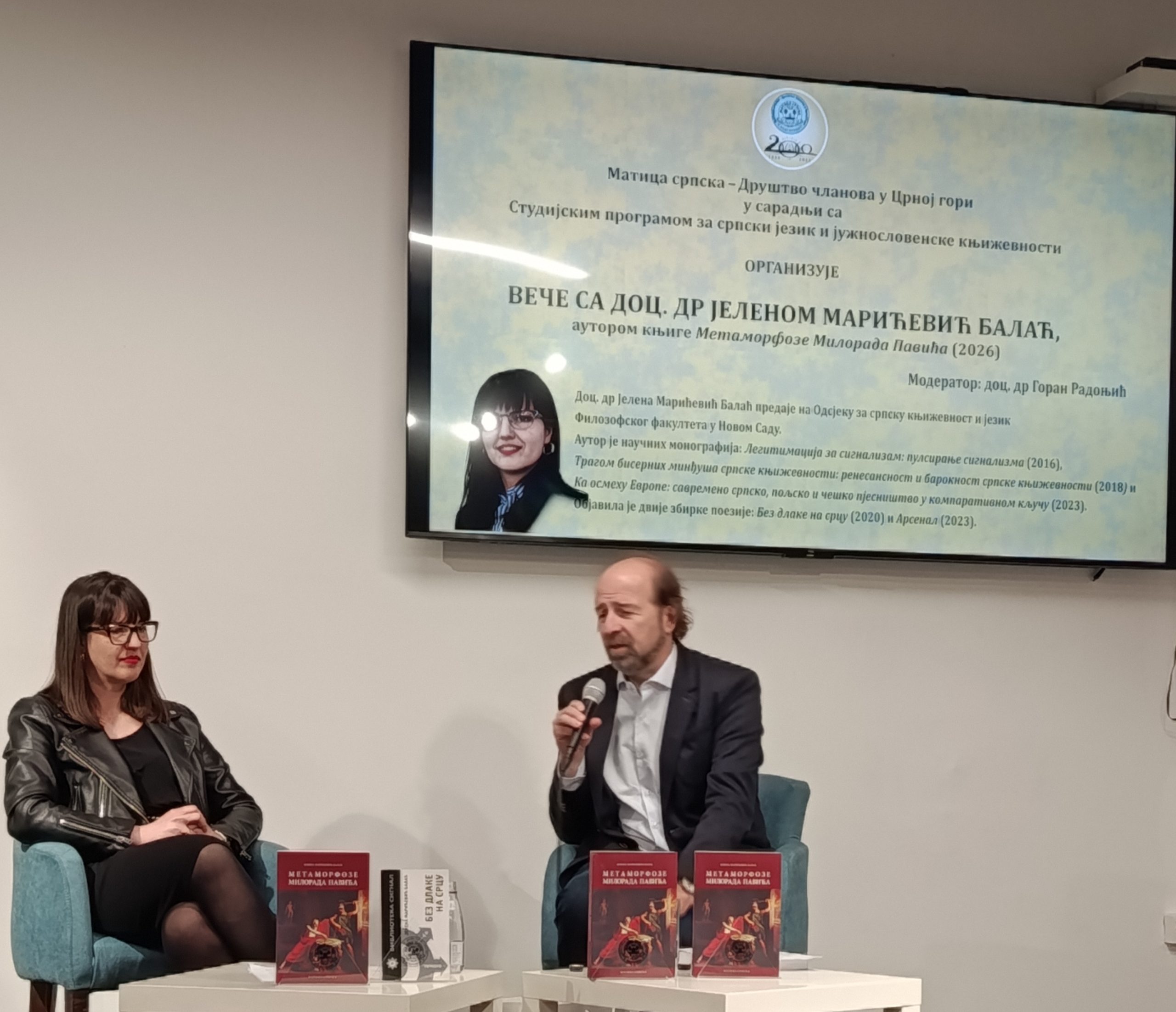 Током вечери, ауторка је открила да је главни подстицај за њено истраживање метаморфоза у дјелу Милорада Павића била представа „Цигани лете у небо”. Наглашено је да Павићево стваралаштво, попут симболике воћке ку у Хазарском речнику, нуди човјеку могућност да кроз самоспознају досегне божанско. Павић се, како је истакнуто, мора читати истовремено „очима ума и очима срца”, јер управо историја српске књижевности кроз његово дјело чува суштинске вриједности нашег идентитета.